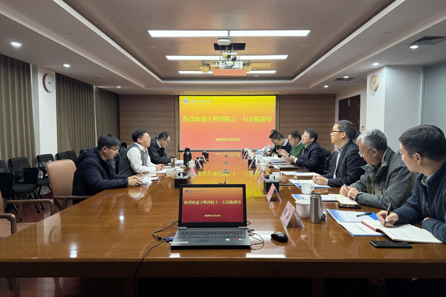 作者:郭凡 图片作者:郭凡 来源:土木工程学院 发布日期:2025-12-16 浏览:次2025年12月14日,苏州科技大学举办土木工程学科高质量发展系列活动。我国工程防护领域著名专家、中国工程院院士王明洋应邀来校,作“现代战争下关键基础设施防护若干理论问题”的学术报告,并出席土木工程学科高质量发展研讨会。校党委书记姜朋明,党委常委、副校长唐柏鉴等参加活动。