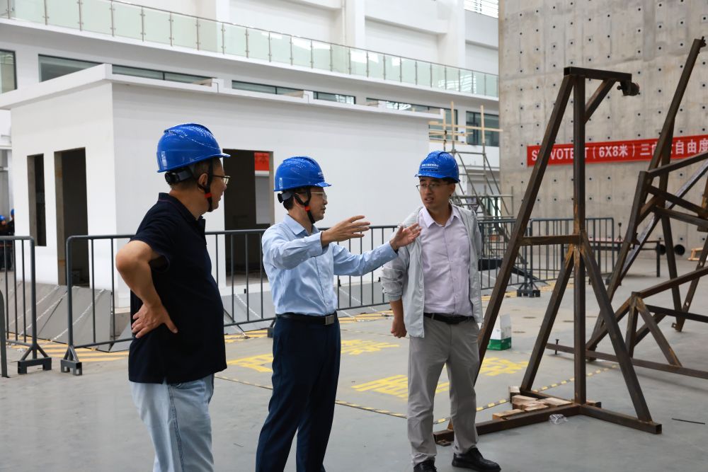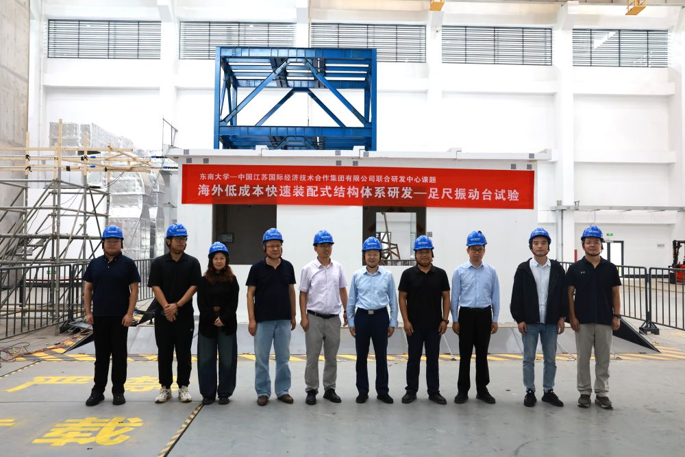 本次试验为“东南大学—中国江苏国际经济技术合作集团有限公司联合研发中心”重点课题——“海外低成本快速装配式结构体系研发”的足尺振动台试验。姜朋明详细了解了项目的背景与意义,并就研究重点、试验注意事项以及平台的高水平建设与管理等方面提出相关要求。地震工程研究中心高水平抗震试验平台项目建设负责人、土木工程学院教授田石柱组织实施本次试验,取得的试验成效获得委托方高度认可。