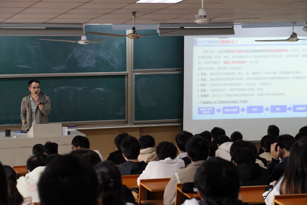 本次活动得到学院多学科力量的鼎力支持,各系、教研室的资深导师组成导师交流团。他们剖析智能建造与建筑工业化的协同发展趋势,介绍道路与桥梁工程智能化运维的技术突破,解读地下空间开发与地质灾害防控的前沿动态,阐释结构抗震防灾与性能提升的核心方向,聚焦工程全生命周期管控的关键要点,介绍力学学科的发展前沿以及在现代工程中的基础支撑作用,解读车路协同与交通流优化的前沿技术应用,介绍高性能混凝土与新型复合材料在工程结构中的应用成效。活动现场,导师们展示了往届优秀毕业生的发展风采,这些身边的榜样让在场学子深切感受到“土木人”的责任与担当,既增强了对学院的归属感与自豪感,更点燃了投身土木事业、追求学术卓越的热血豪情。