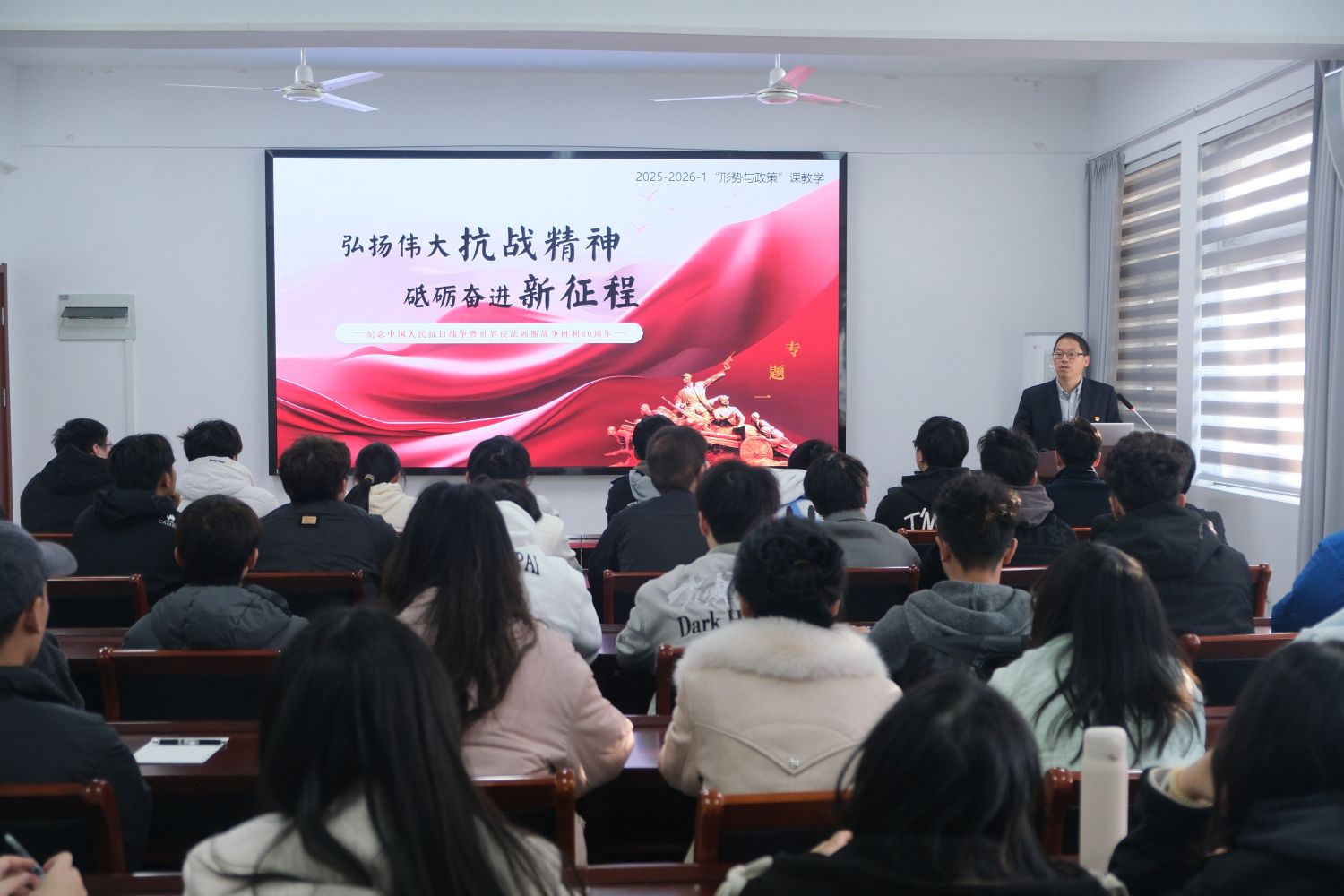 唐柏鉴从当前世界形势与现状引入,围绕中国人民抗日战争为世界反法西斯战争胜利作出重大贡献、从抗日战争中汲取民族复兴的强大力量、伟大抗战精神是中国人民弥足珍贵的精神财富等方面,对新时代如何传承弘扬伟大抗战精神、矢志推进民族复兴伟业进行了深入阐述。课后,他详细了解了学生们的学习生活近况,听取了学生们对课堂教学、校园环境、后勤服务等方面的意见建议,并分享了学校在博士点建设、硕士推免工作等方面的最新情况。