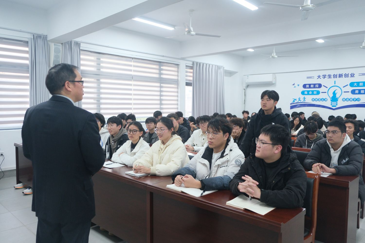 作者:王烽圣 图片作者:沈文依 来源:土木工程学院 发布日期:2025-11-20 浏览:次11月19日下午,校党委常委、副校长、“钱七虎卓越班”班主任唐柏鉴以《弘扬伟大抗战精神,砥砺奋进新征程》为主题,为“钱七虎卓越班”和土木2311班学生讲授“形势与政策”课。
