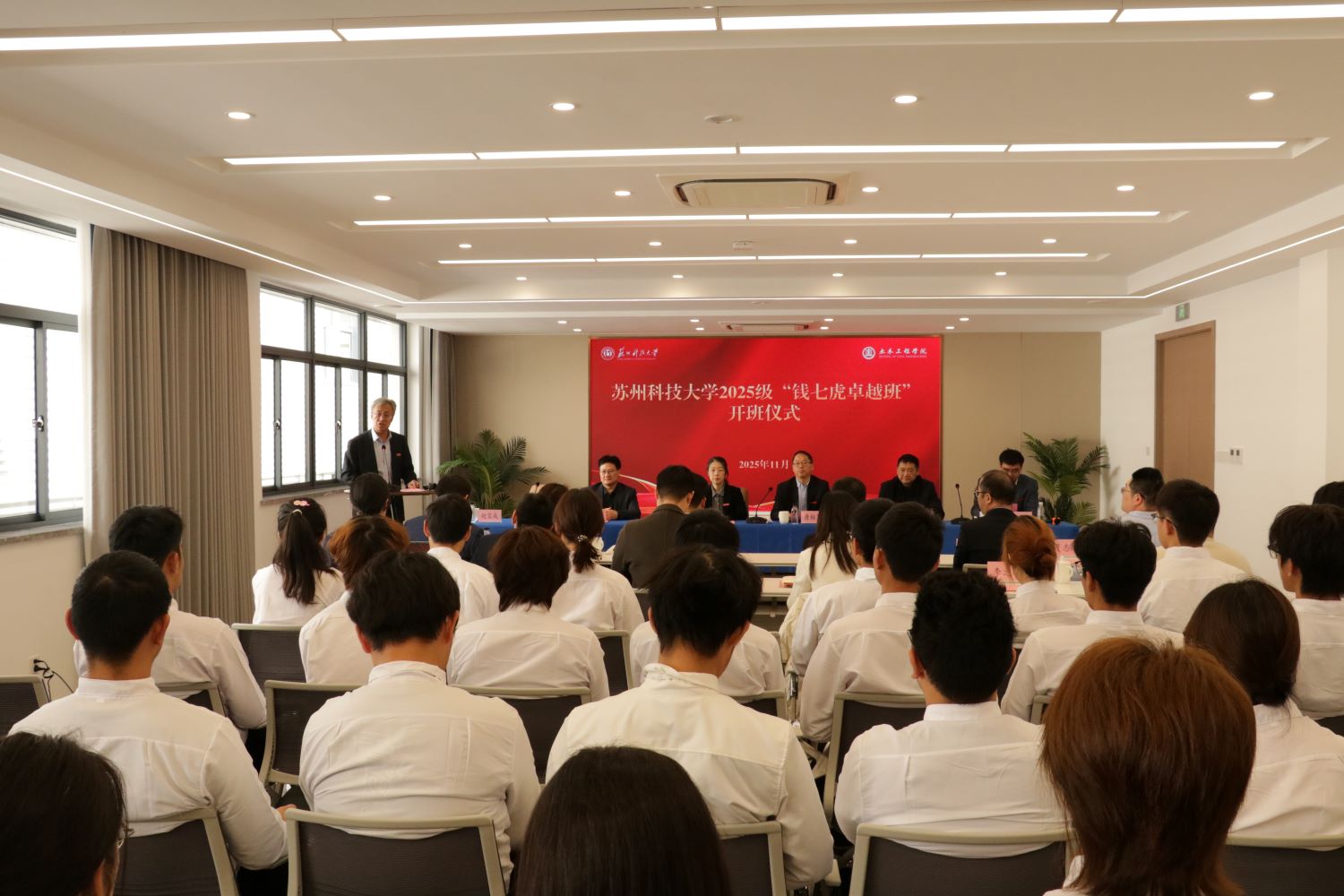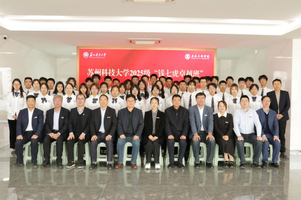 作者:宫淑阳 图片作者:李之坤 来源:土木工程学院 发布日期:2025-11-28 浏览:次11月28日上午,我校2025级“钱七虎卓越班”开班仪式在江苏瑞宁智能科技有限公司新质生产力创新中心举行。校党委常委、副校长崔雪丽,校党委常委、副校长、钱班班主任唐柏鉴,江苏瑞宁智能科技有限公司董事长龚瑞良,钱七虎院士团队成员、苏州国动防护研究院首席专家刘建永,校党委组织部、党委宣传部、教务处、学生处、土木工程学院等单位负责人、企业代表、家长代表,2025级“钱七虎卓越班”全体新生和教师代表参加仪式。仪式由土木工程学院党委书记赵宝成主持。