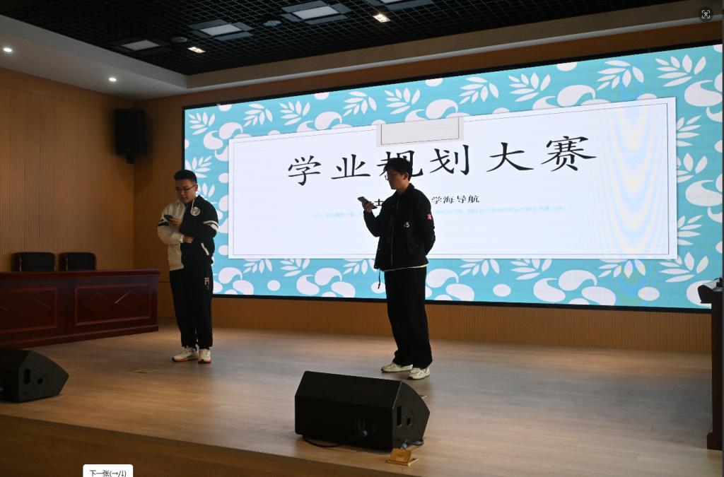 大赛分为初赛、复赛、决赛三个阶段。初赛阶段,全体新生提交个人学业规划书,内容涵盖自我认知、专业探索、目标设定、实施路径及评估调整等模块。经教师评审,8份优秀规划书脱颖而出进入复赛。决赛现场,8位选手通过PPT展示、现场答辩等环节,全方位呈现了个人大学四年的学业规划与发展蓝图。